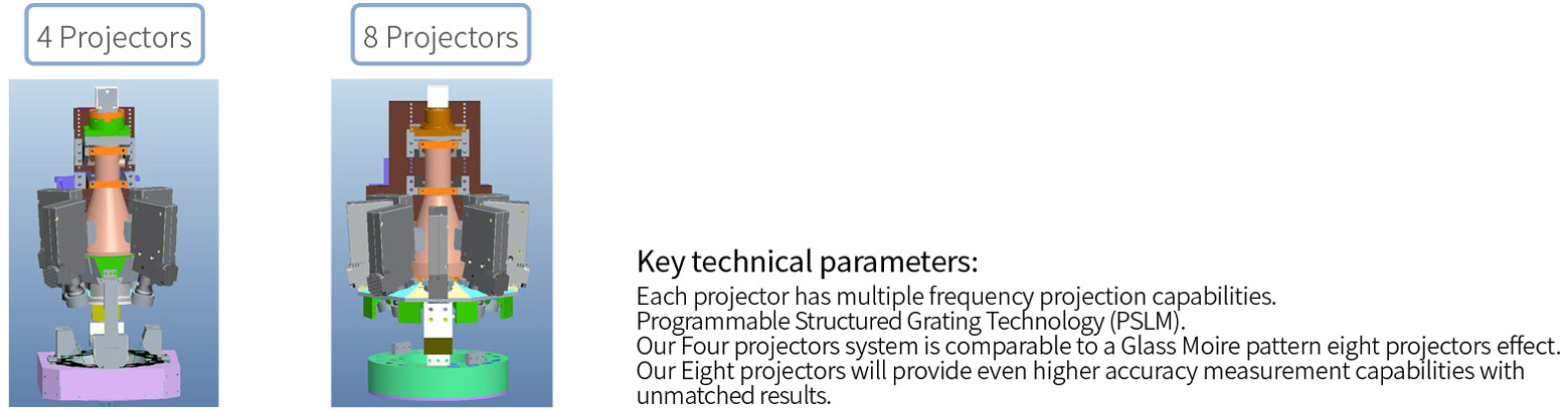 Completely in house developed and manufactured Programmable Structural Grating (PSLM) Technology forms full-spectrum structural gratings, which achieves software modulation and control of structural gratings compared to traditional fixed Glass Moire gratings. The detection capabilities and applications range of the equipment have been greatly improved and enhanced.