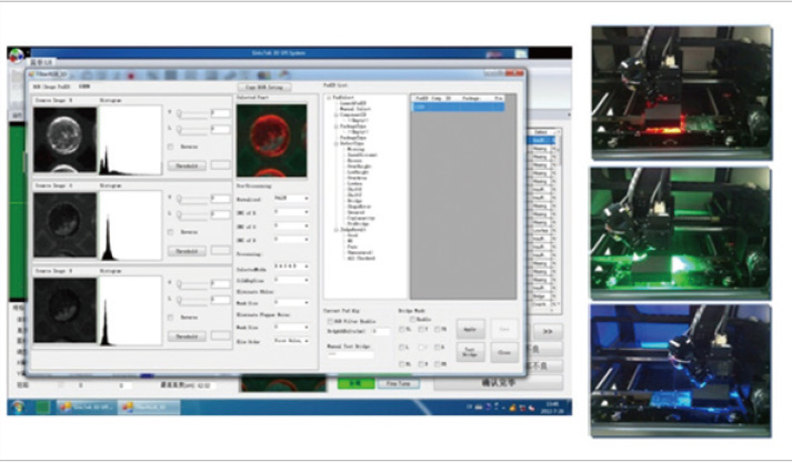 專利的RGB Tune功能通過單獨(dú)拍攝紅綠藍(lán)三原色照片并結(jié)合獨(dú)特的顏色過濾算法,完美的解決橋接誤判和相對基準(zhǔn)面不確定的問題,并同時提供2D/3D測量 結(jié)果和彩色的錫膏圖片,配合2D光源有效避免錫膏因紅光角度問題導(dǎo)致的RGB彩色效果失真; 不同基板顏色的RGB調(diào)試通用性更強(qiáng)大幅度提升設(shè)備的(高度, 體積,面積)重復(fù)性精度。